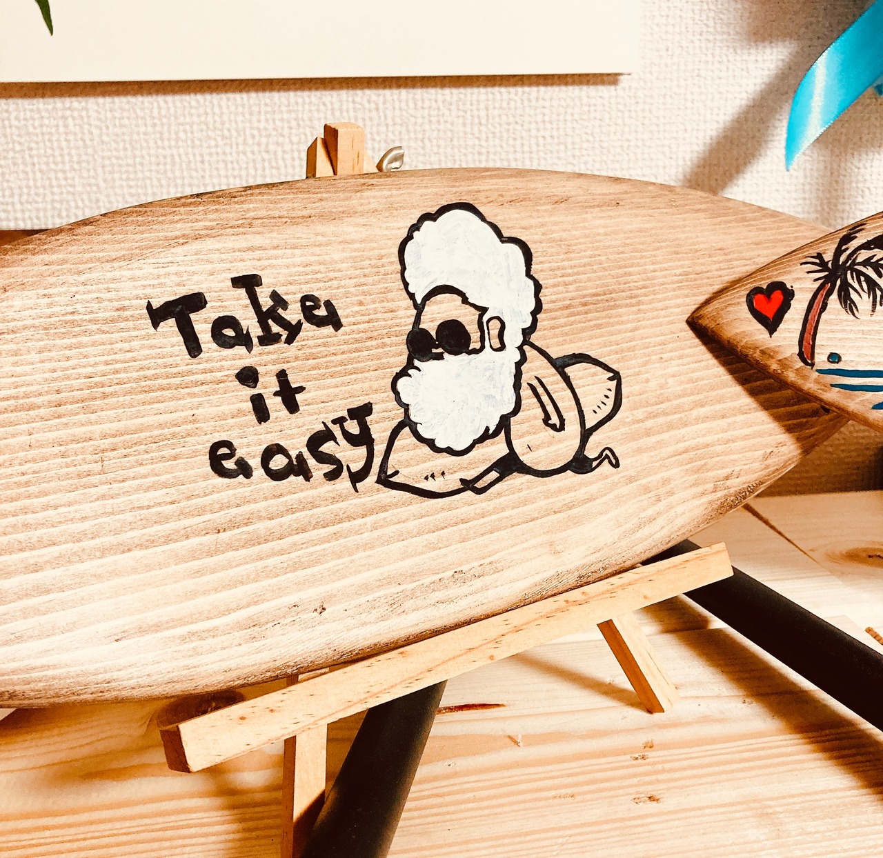木目のサーフボードとポップなアートの調和がいい感じ♪