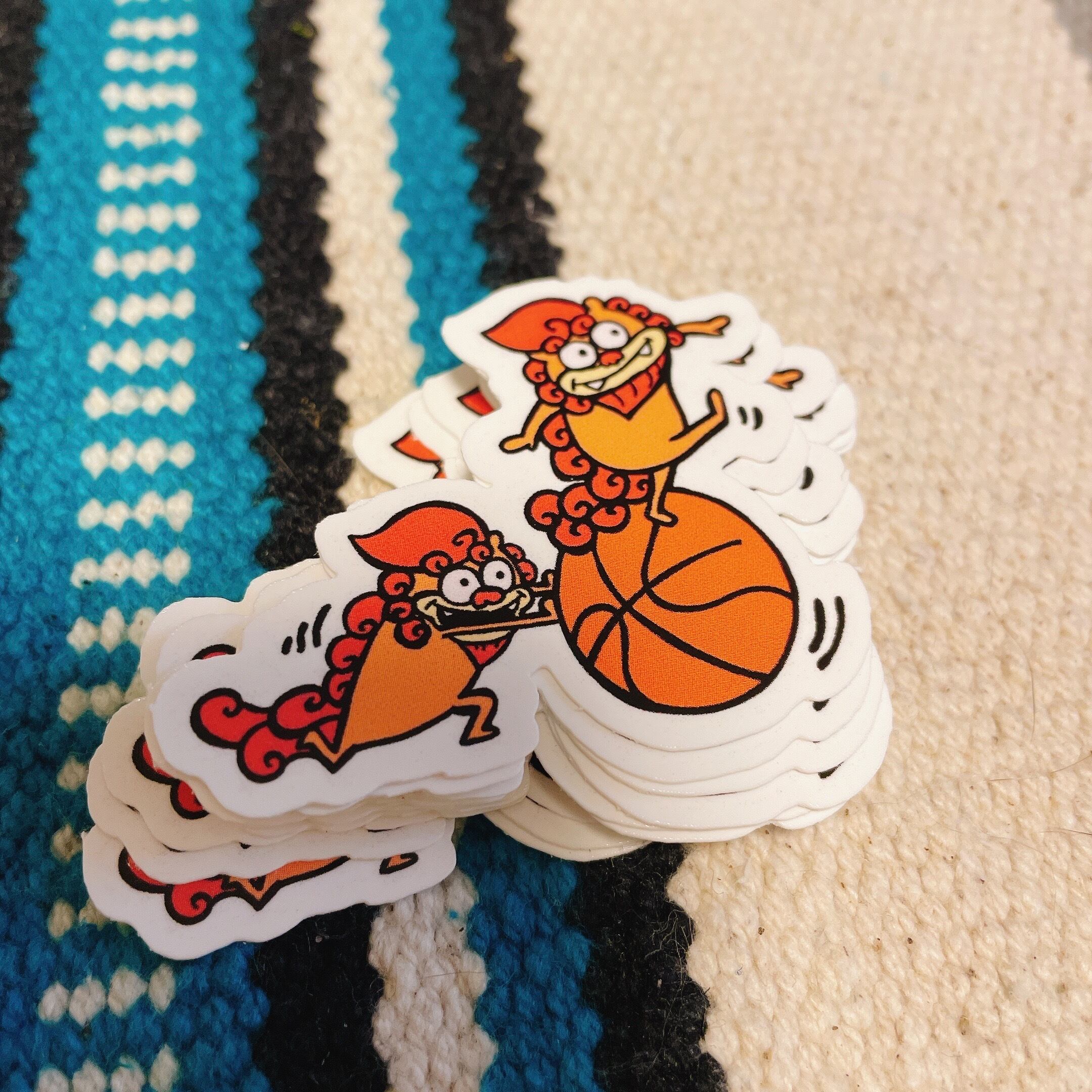 バスケットボールと琉球のシーサーをモチーフにした、オリジナルステッカー