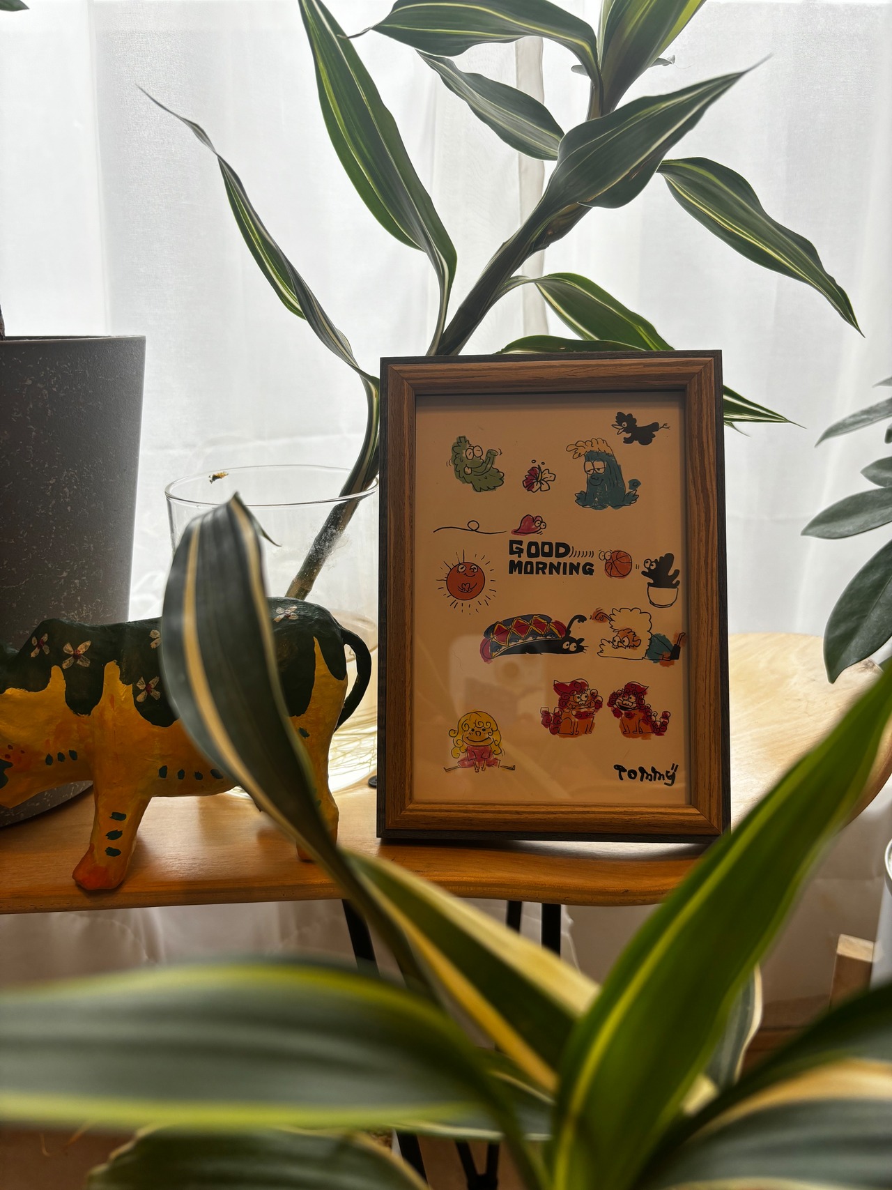 1日の始まりに見てワクワクするような絵が描けたのでポストカードにしました。